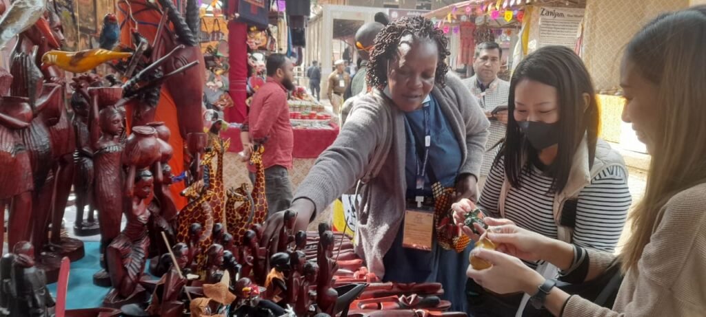 लेविटिक्स ने बताया कि उनके स्टॉल पर लकड़ी से तैयार पशु-पक्षियों की विभिन्न कलाकृति उपलब्ध हैं। युगांडा में गैल्फ की लकड़ी ऐसी कलाकृतियों को बनाने में सबसे उपयुक्त होती हैं। इस लकड़ी से लकड़ी में नक्काशी व मुड़ाई का काम आसानी से हो जाता है। उनका कहना है कि लकडिय़ों की कलाकृतियों की देश-विदेश में खूब डिमांड है। वे अपने उत्पादों की ब्रांडिंग व मार्केटिंग के लिए दिनभर गोरिल्ला मास्क पहनकर घूमते रहते हैं, जबकि उनके बाकि साथी स्टॉल पर मौजूद रहते हैं।