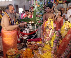 श्रीरामानुज संप्रदाय की तीर्थपीठ हरियाणा एवं इंद्रप्रस्थ पीठ के पीठाधीश्वर अनंत विभूषित श्रीमद जगदगुरु रामानुजाचार्य स्वामी पुरुषोत्तमाचार्य जी महाराज के सान्निध्य में आयोजित किए गए भगवान श्रीलक्ष्मीनारायण के विवाहोत्सव में आश्रम के युवाचार्य स्वामी श्री अनिरूद्धाचार्य जी महाराज, मुख्य पुजारी रमाकांत शास्त्री और दक्षिण भारत से आचार्यों ने भगवान श्रीलक्ष्मीनारायण का मंत्रोच्चर के साथ अभिषेक किया।