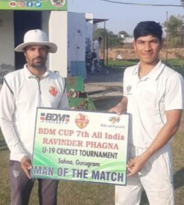 बी डी एम कप 7th ऑल इंडिया रविंदर फागना U-19 क्रिकेट टूर्नामेंट 2024 रविंदर फागना क्रिक्रेट भूमि ग्राउंड फरीदाबाद पर खेला गया यह मैच स्काइ वाकर्स क्रिकेट अकादमी और डी एम ए क्रिक्रेट अकादमी मेरठ के बीच खेला गया। इस मैच मे स्काइ वॉकर्स क्रिकेट अकादमी ने डी एम ए क्रिक्रेट अकादमी मेरठ को 3 विकेट से हराया , यह मैच 40 ओवर का था और स्काइ वाकर्स क्रिक्रेट अकादमी ने पहले टॉस जीतकर फील्डिंग करने का निर्णय लिया। डी एम ए क्रिकेट अकादमी ने पहले बैटिंग करते हुए 38.5 ओवर में 10 विकेट के नुकसान पर 182 रन का लक्ष्य दिया ।