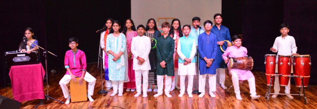 जन्माष्टमी के अवसर पर बच्चे अपने कार्यक्रम की प्रस्तुति देते हुए