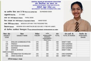 सुवृंदा सूद ने विषयवार असाधारण प्रदर्शन करते हुए गणित, फ्रेंच, विज्ञान और इंफॉर्मेशन टेक्नोलॉजी में 100 में से 100 अंक प्राप्त किए ।